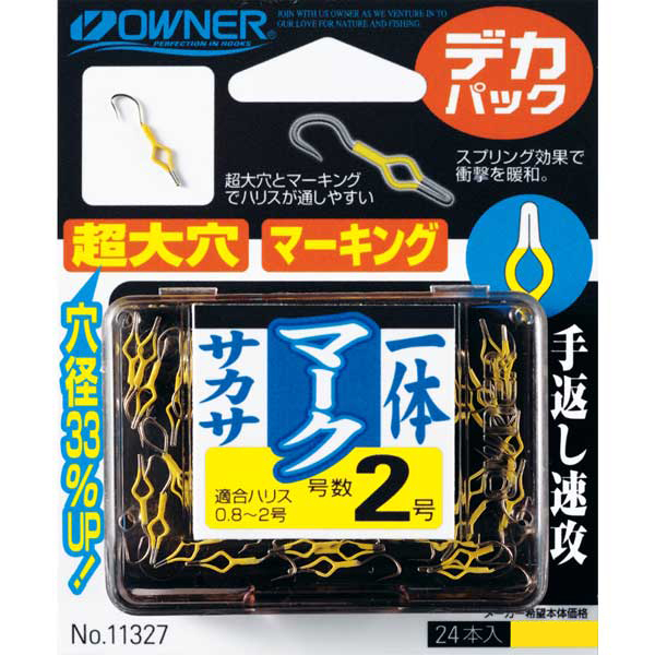超大穴ハリス止とマーキングによってハリスが非常に通しやすい。また、ハリス止接合部にもマーキングを施し、サカサの状況が一目でわかる!ハリス止には平線ステンレスワイヤーを使用し、負荷がハリスの一点に集中せず、ハリスが切れにくい。鈎は、刺しやすく、外れにくい速攻サカサを使用し、手返しも抜群です。