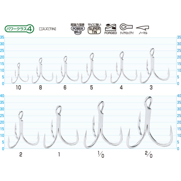 ぱっと見だけで分かる鈎先の鋭さ、鈎軸の強度や靱性といった鈎の基本性能はもちろん、スーパーティン処理の防錆加工や接合部の溶接強度、伝達パワーのバランス。