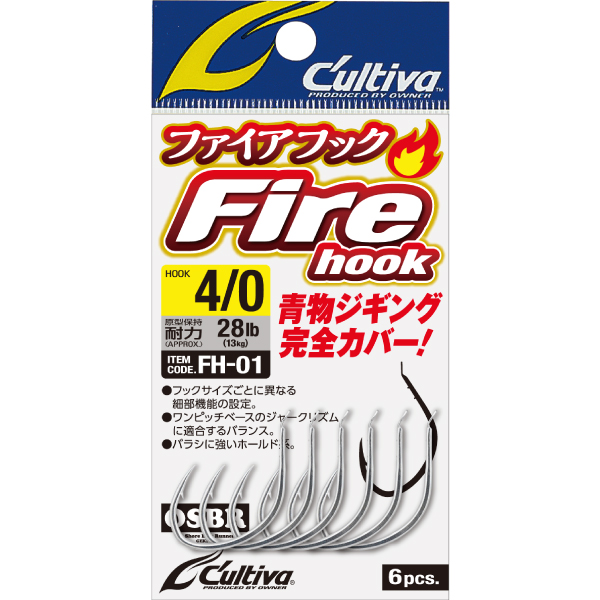 【ファイアフックの特徴】3/0まではジガーライトクラスの細軸、4/0でジガーミディアムクラスの中軸、6/0では一気に太くなる可変設定です。